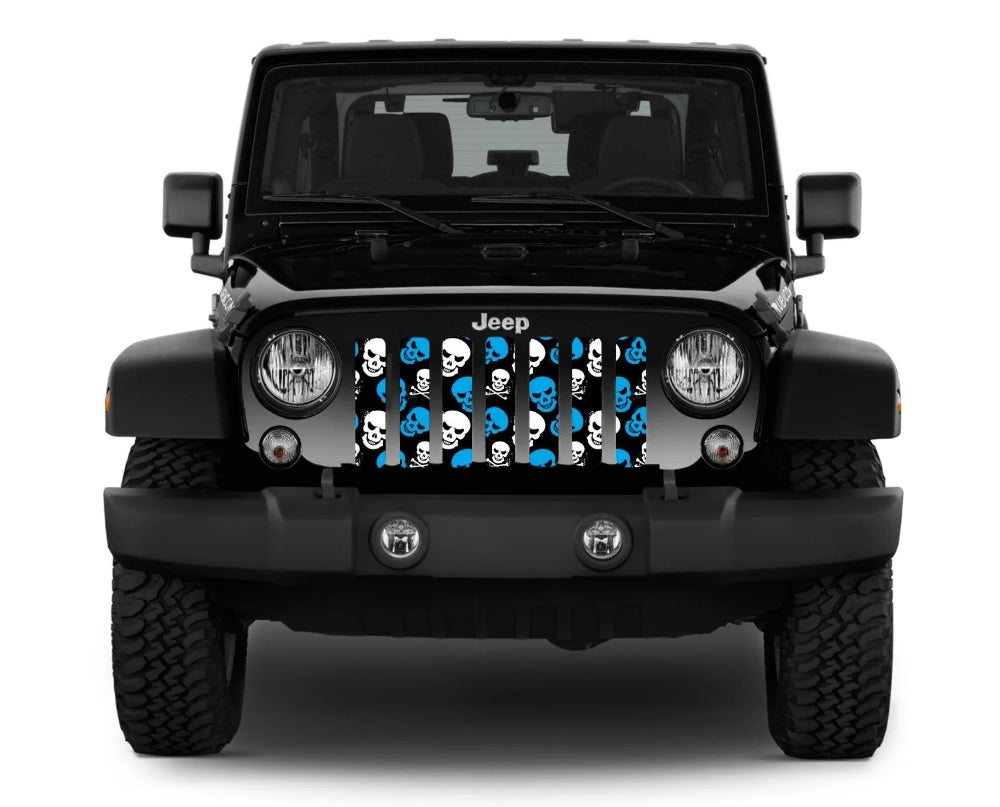 Skulls Blue & White Jeep Grille